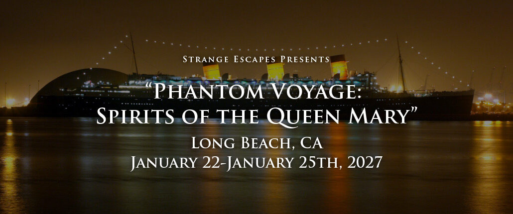 "Phantom Voyage: Spirits of the Queen Mary" Long Beach, CA January 22-January 25th, 2027An elevated paranormal weekend aboard the haunted Queen Mary - ghost hunts, parties, haunted history, and spirits who never went ashore.
